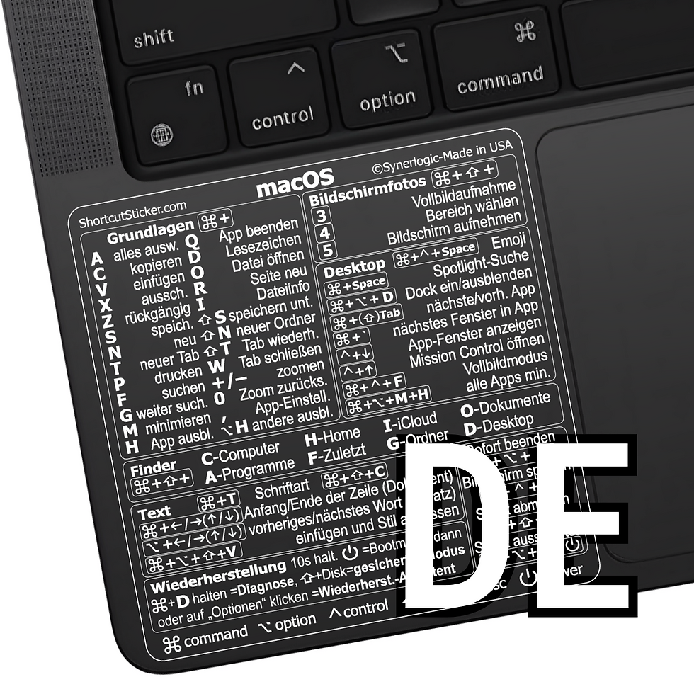 Mac OS / Word+Excel — Tastenkürzel, transparenter Vinyl-Aufkleber (auf Deutsch)